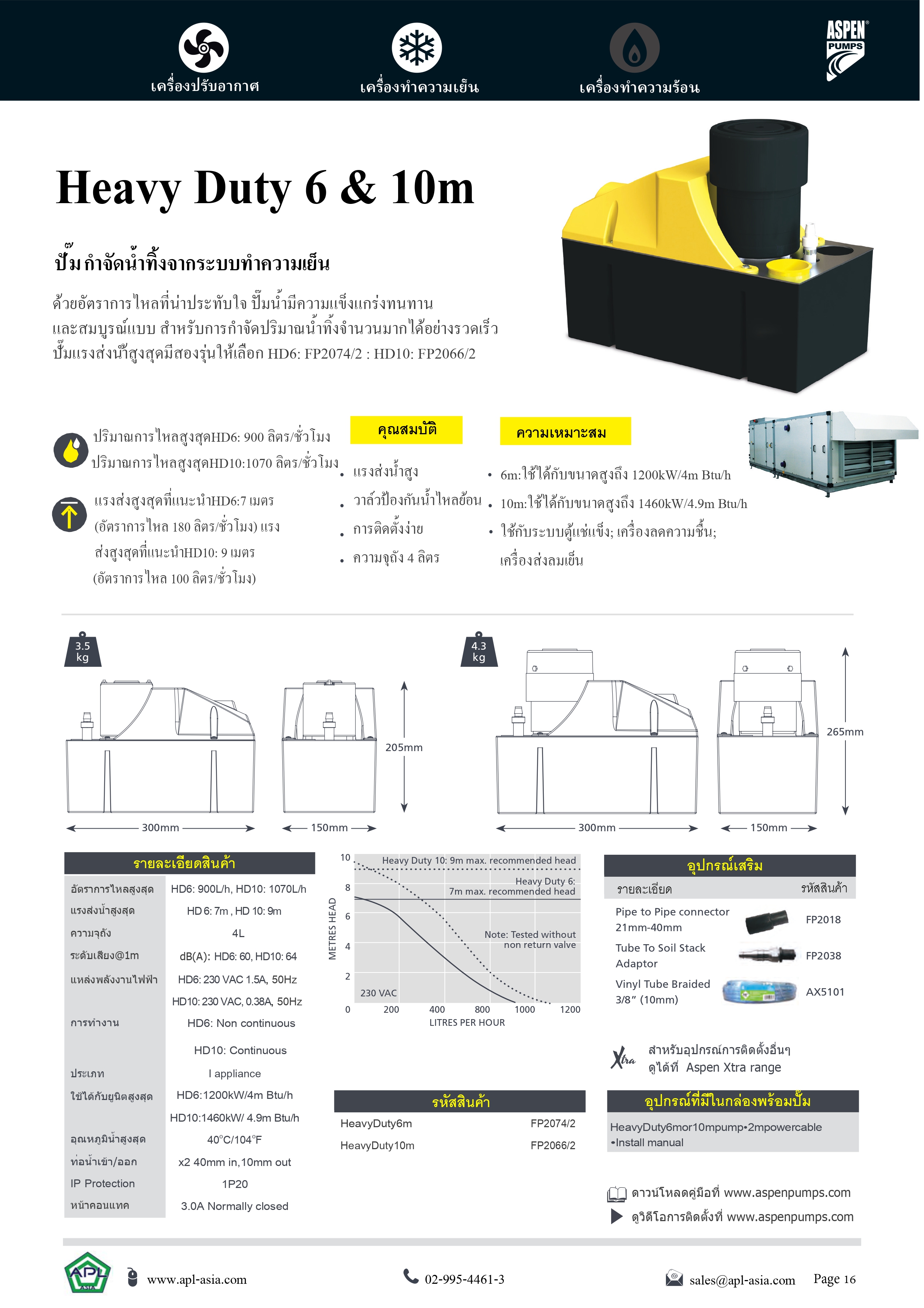 ปั๊มเดรนน้ำทิ้งแอร์ กาลักน้ำแอร์ ปั๊มดูดน้ำทิ้งแอร์ Heavy Duty 6m แบรนด์ Aspen Pumps (ประเทศอังกฤษ)