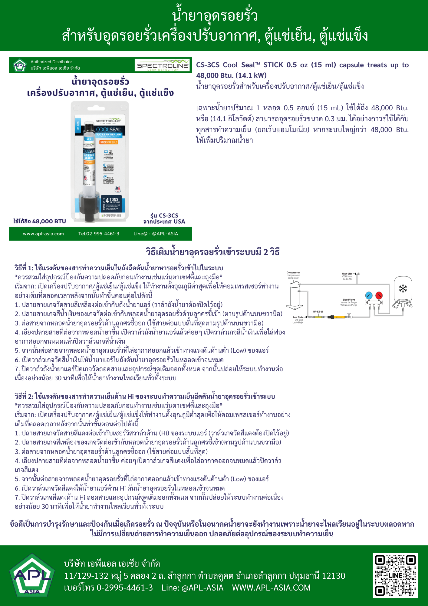 CS-3CS น้ำยาอุดรอยรั่วระบบเครื่องปรับอากาศและเครื่องทำความเย็น แบรนด์ Spectroline (สินค้าจาก USA)