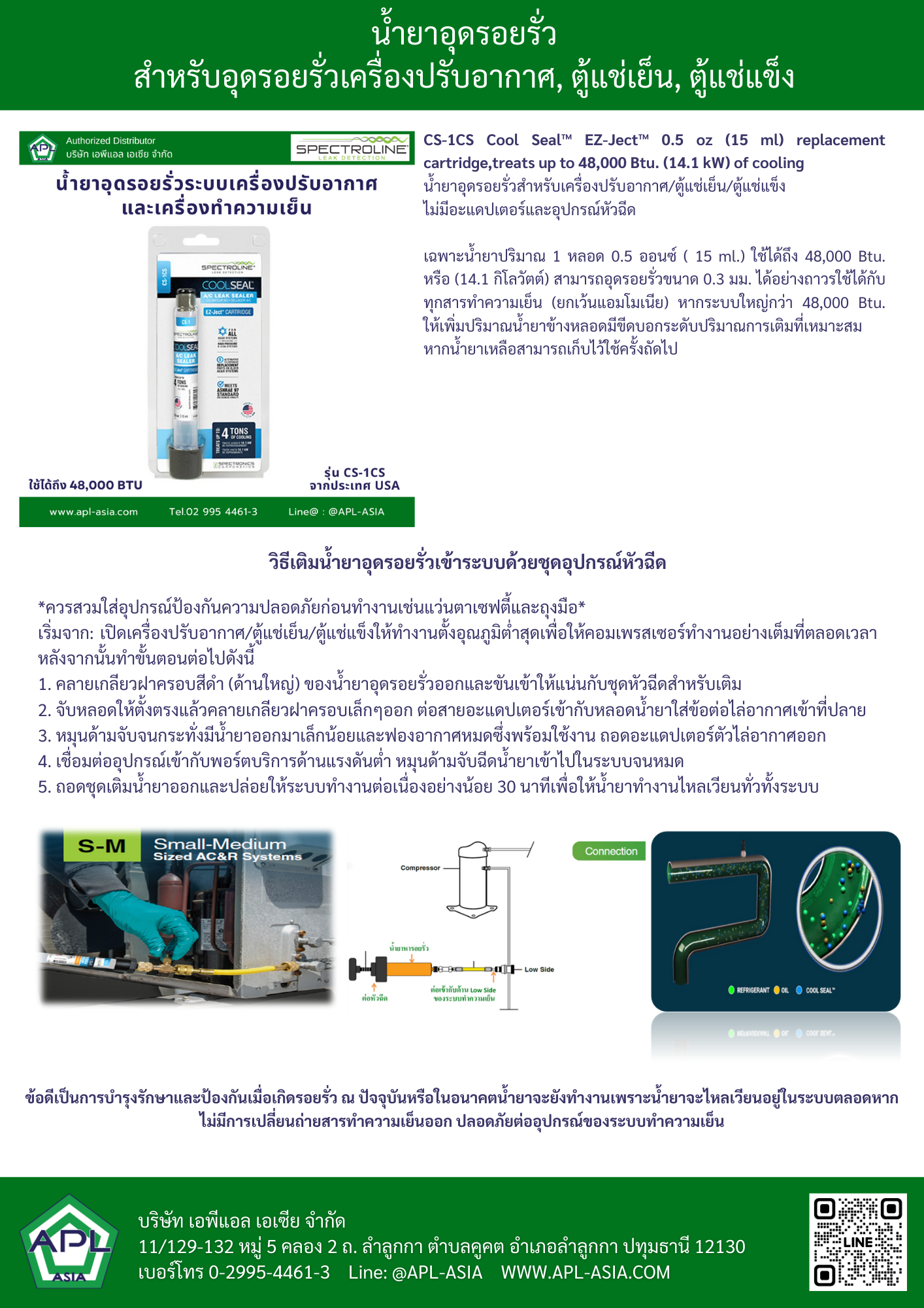 CS-1CS น้ำยาอุดรอยรั่วระบบเครื่องปรับอากาศและเครื่องทำความเย็น แบรนด์ Spectroline (สินค้าจาก USA)