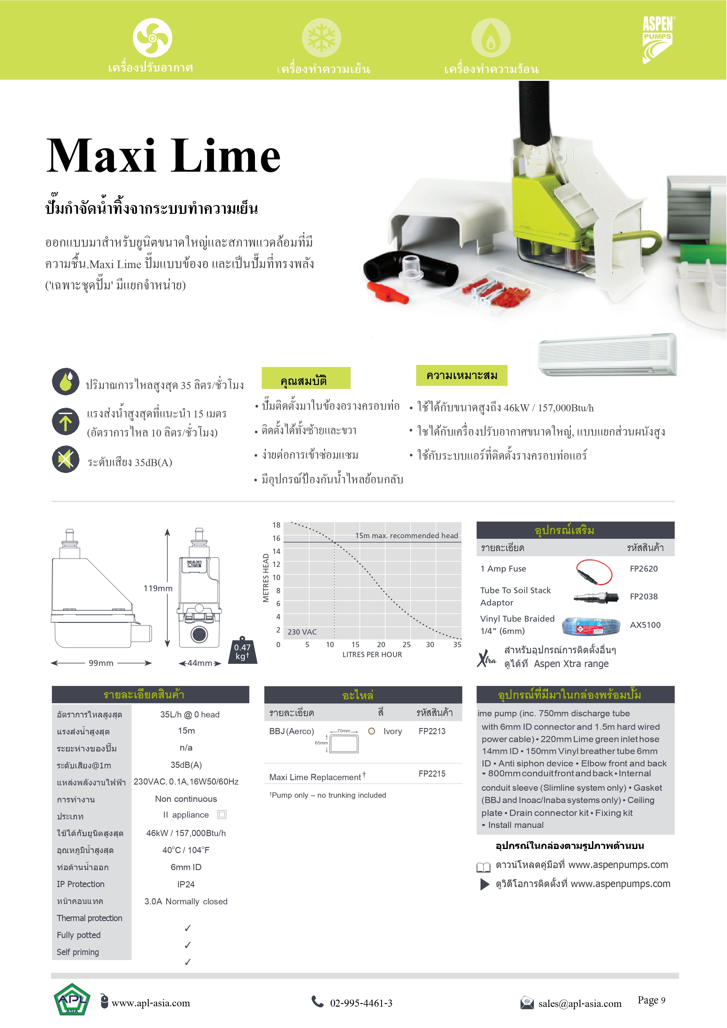 ปั๊มเดรนน้ำทิ้งแอร์ กาลักน้ำแอร์ ปั๊มดูดน้ำทิ้งแอร์ Maxi Lime แบรนด์ Aspen Pumps(ประเทศอังกฤษ)