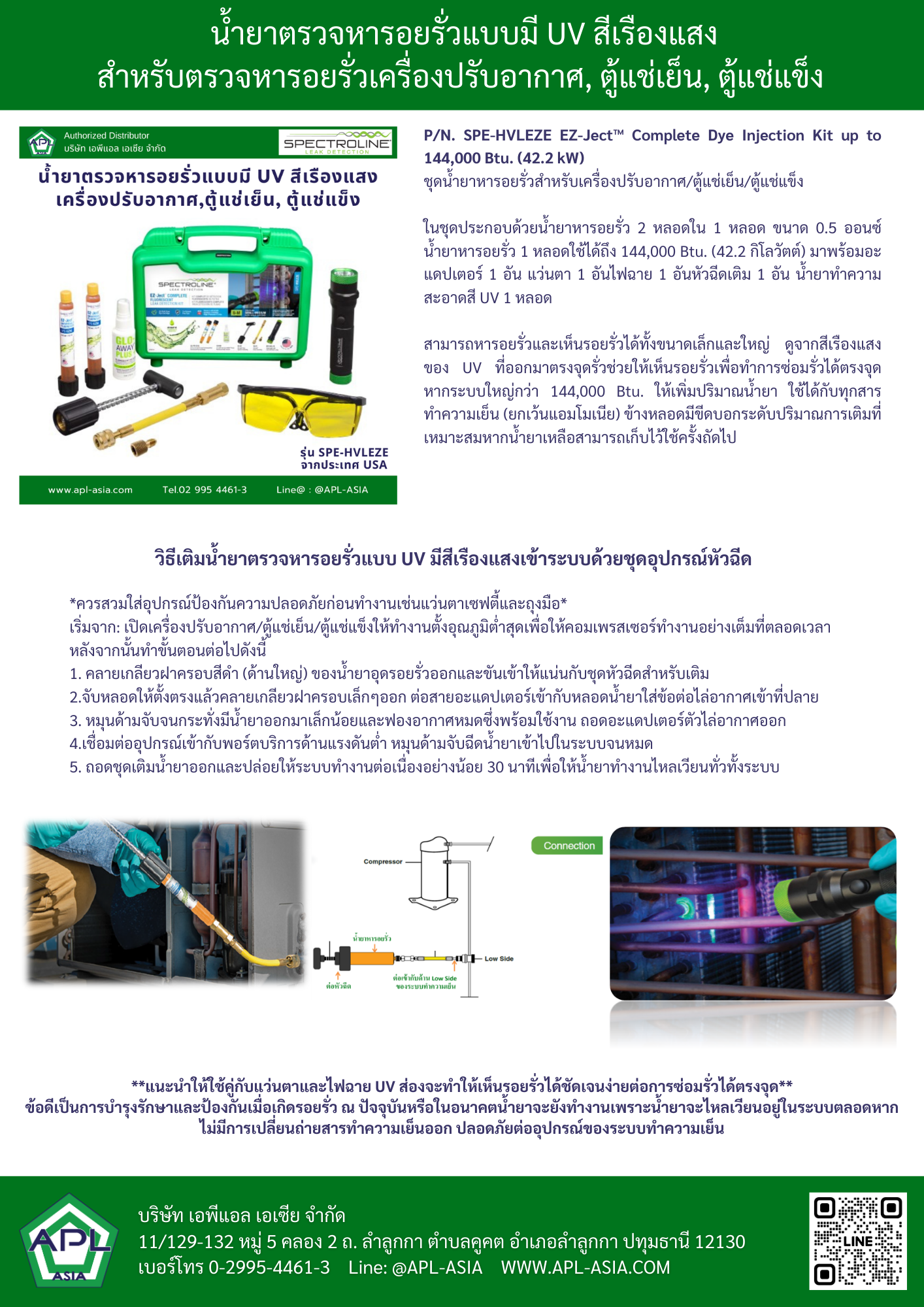 SPE-HVLEZE ชุดน้ำยาย้อมสีเรืองแสงสำหรับตรวจหารอยรั่วแอร์, ตู้เย็น, ตู้แช่ (สินค้าจาก USA)