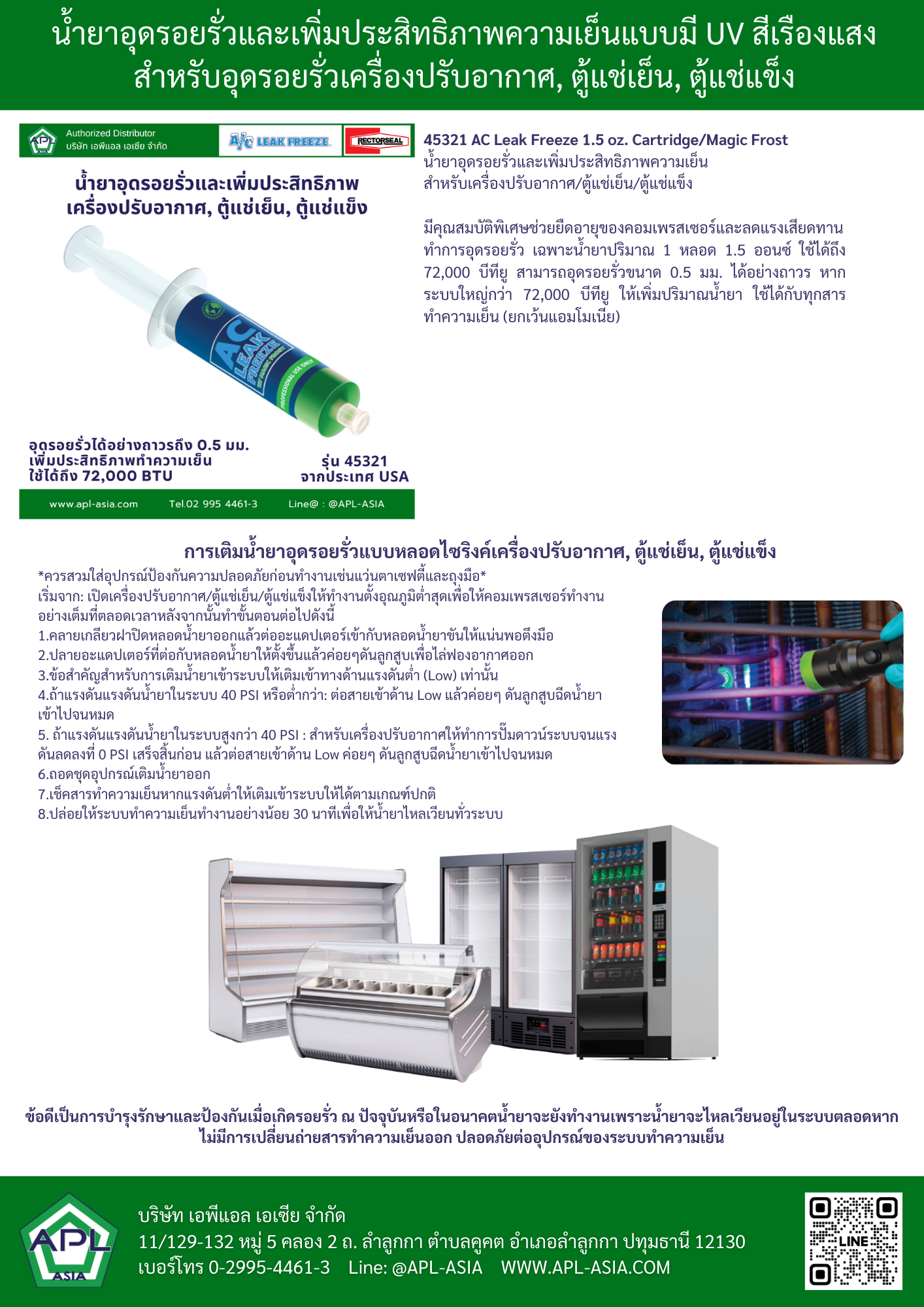 ✅ น้ำยาอุดอรอยรั่วและเพิ่มประสิทธิภาพสำหรับเครื่องปรับอากาศ/ตู้แช่เย็น/ตู้แช่แข็ง