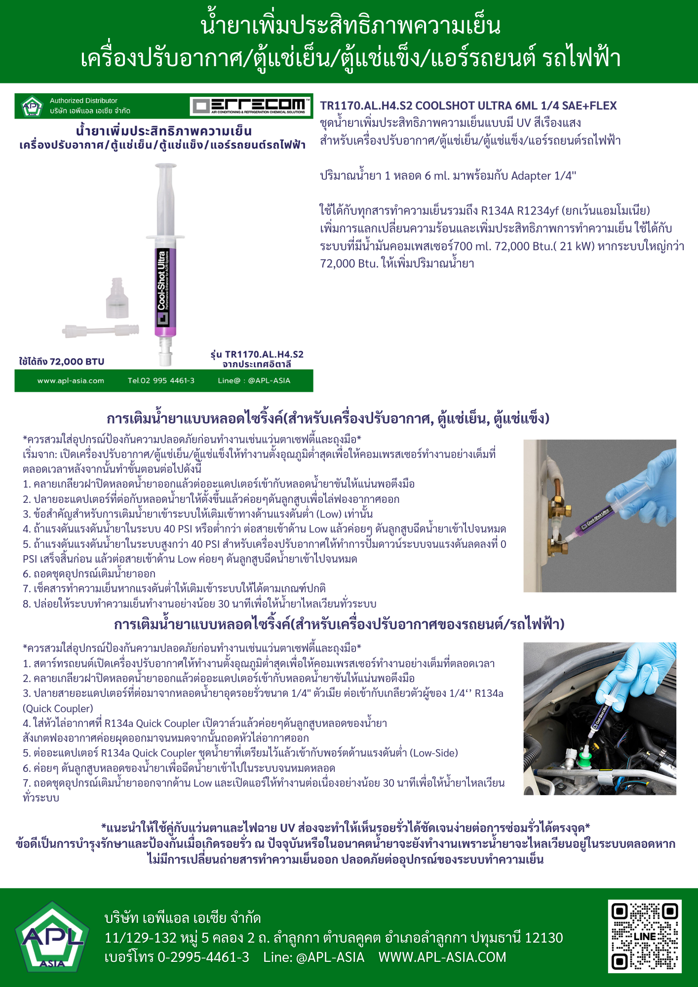 รหัสสินค้า P/N TR1170.AL.H4.S2 COOLSHOT ULTRA 6ML 1/4 SAE+FLEX