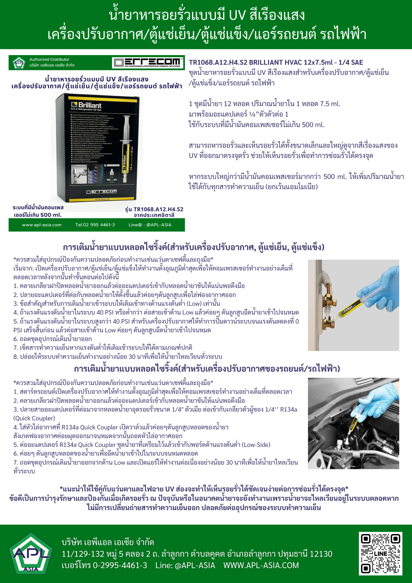 รหัสสินค้า P/N. TR1068.A12.H4.S2 BRILLIANT HVAC 12x7,5ml - 1/4 SAE