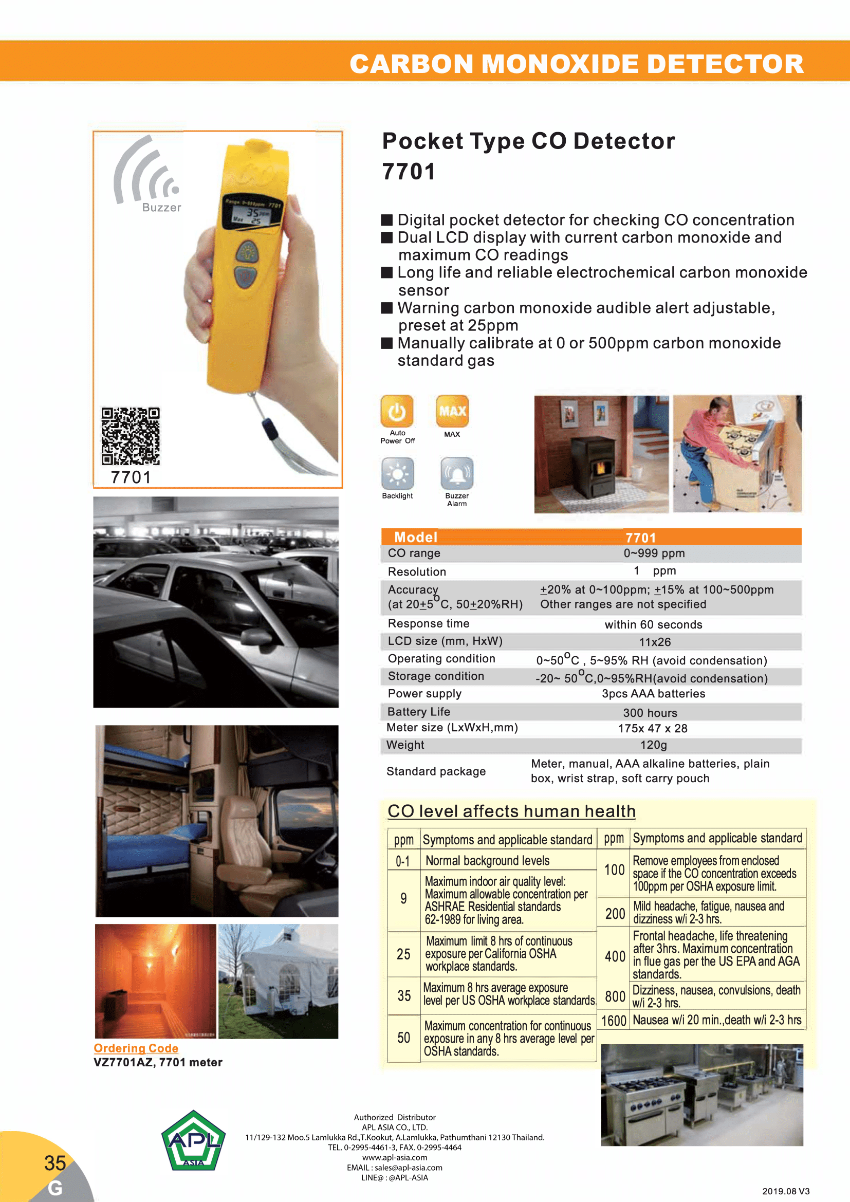 AZ 7701 เครื่องวัด CO แบบพกพา